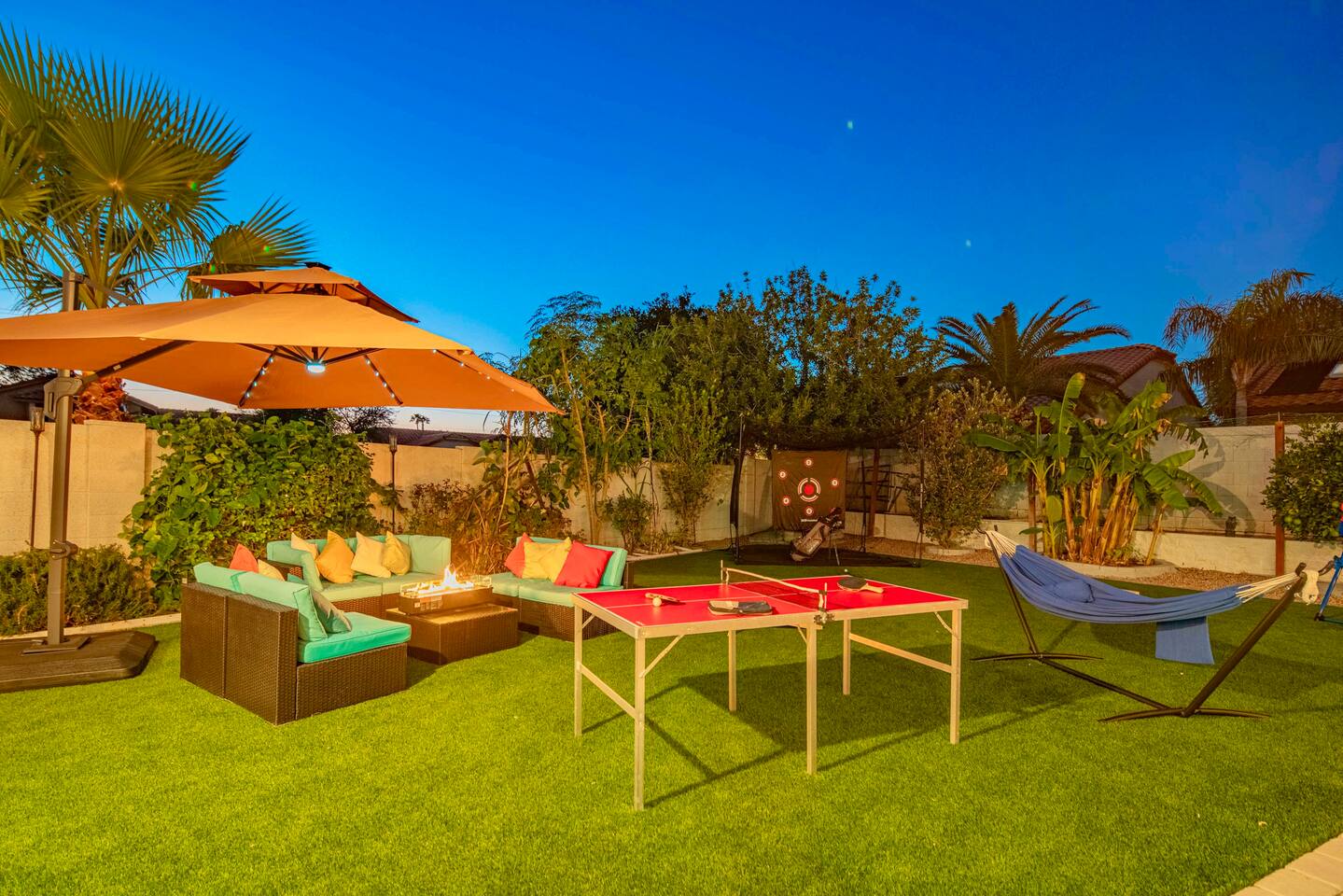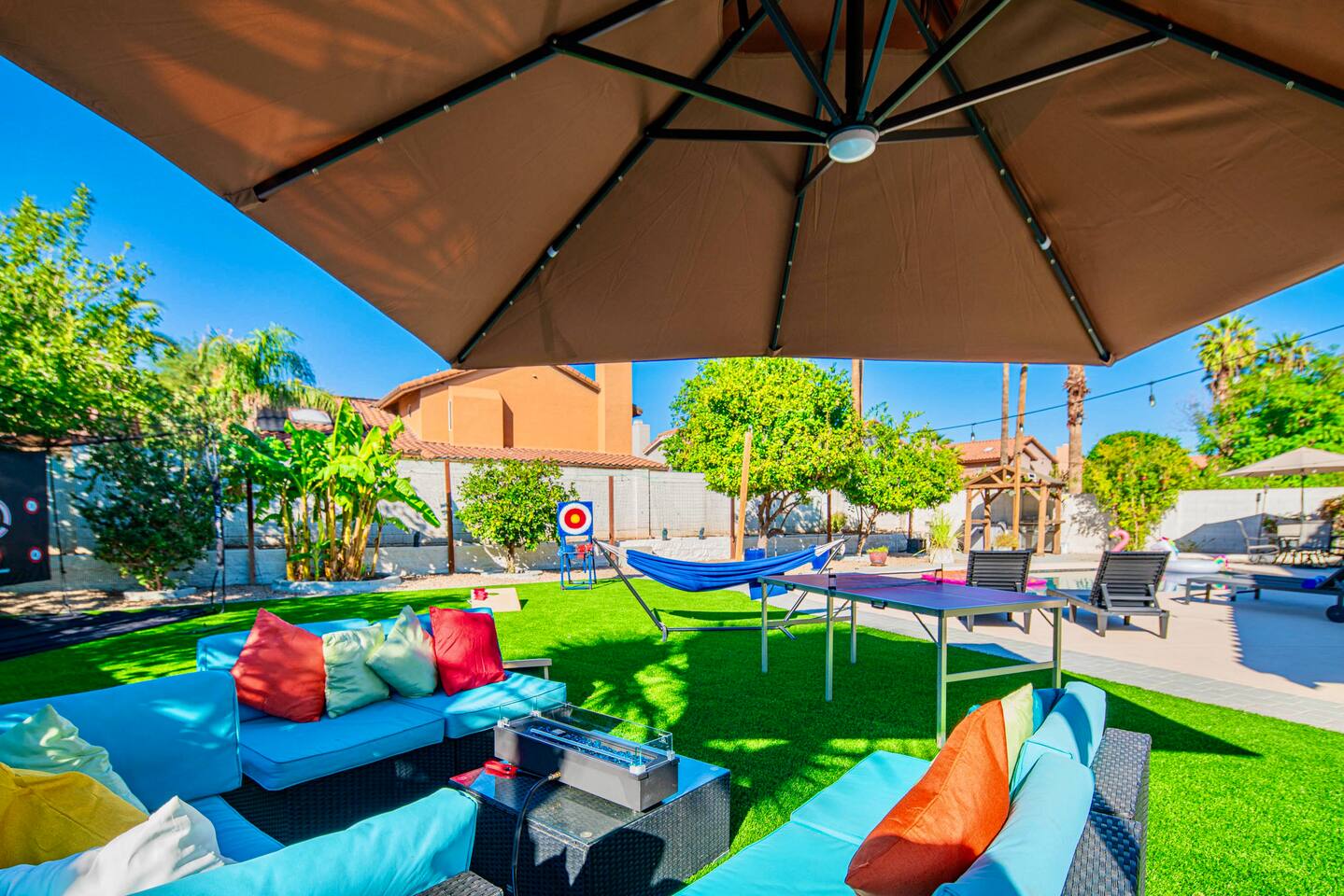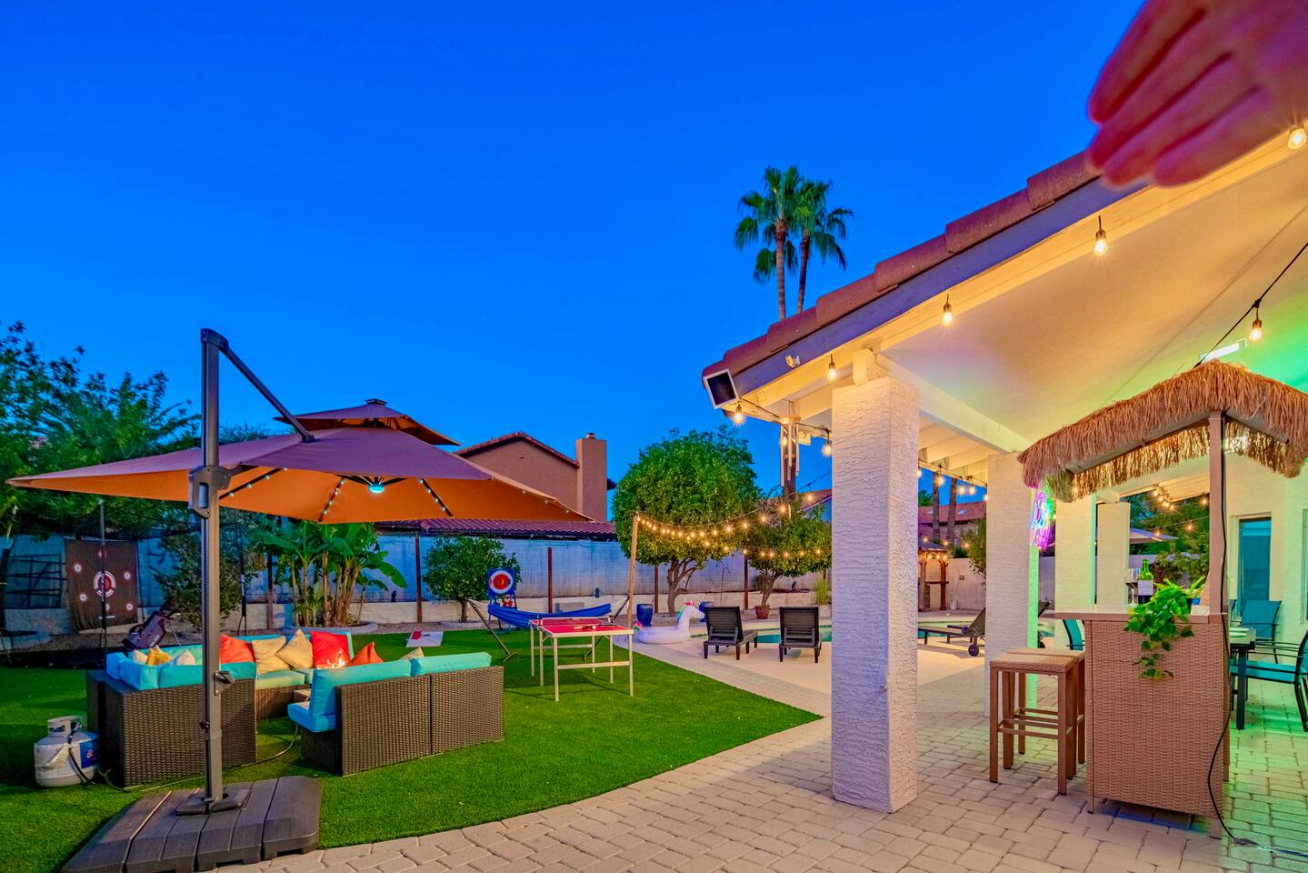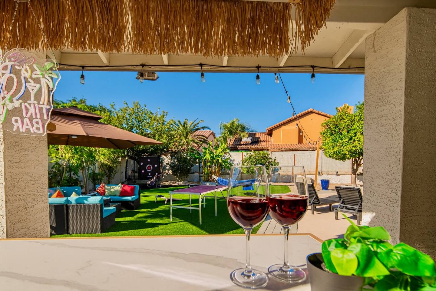 Welcome to your Scottsdale Resort Vibes Retreat — where relaxation meets fun! This luxury family- and group-friendly escape blends comfort, entertainment, and Scottsdale flair. Whether you're planning a family getaway, bachelorette weekend, or golf trip, this home delivers resort-style living in one of Scottsdale’s best neighborhoods. Highlights: Heated Pool, Hot Tub, Tiki Bar, Photo ready wall(s), Golf hitting range, Massage Chair, baby high chair, bath tub and Plenty of games.