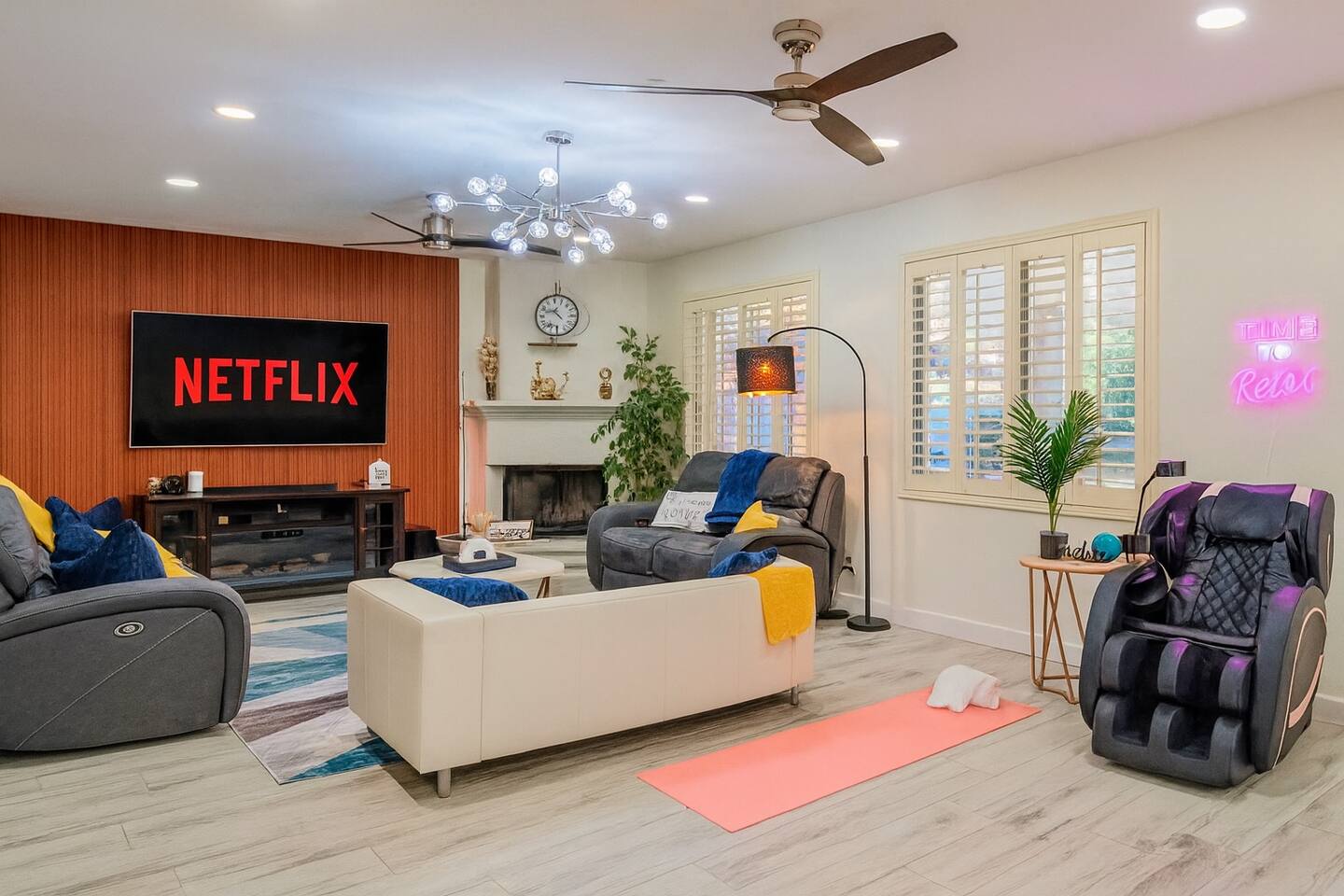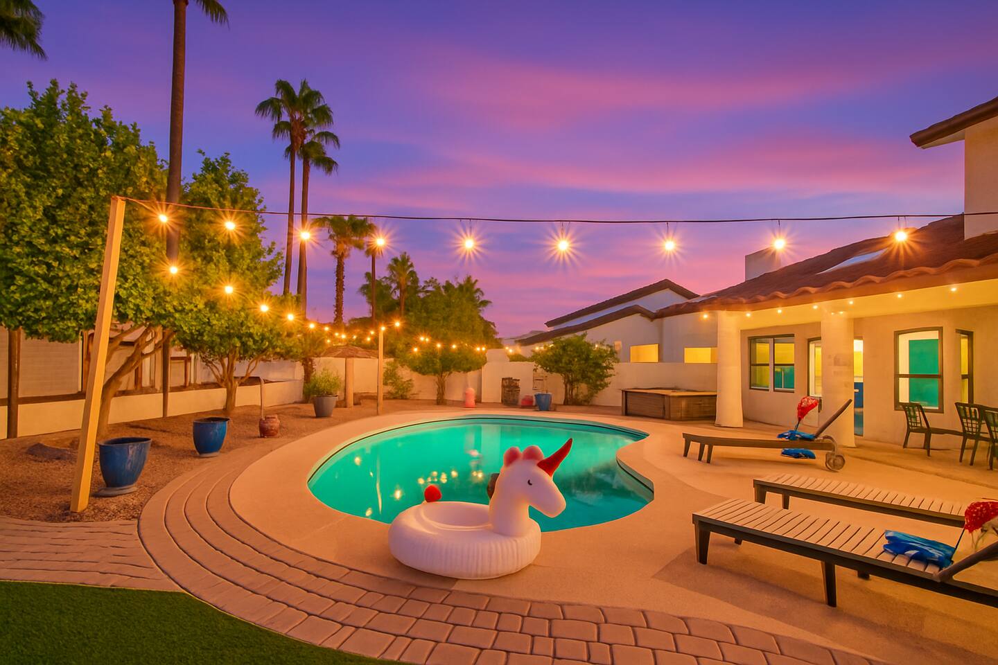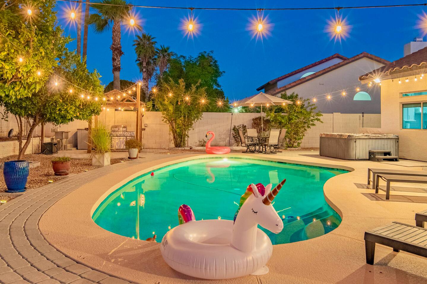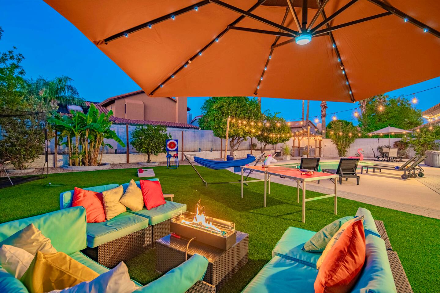 Welcome to your Scottsdale Resort Vibes Retreat — where relaxation meets fun! This luxury family- and group-friendly escape blends comfort, entertainment, and Scottsdale flair. Whether you're planning a family getaway, bachelorette weekend, or golf trip, this home delivers resort-style living in one of Scottsdale’s best neighborhoods. Highlights: Heated Pool, Hot Tub, Tiki Bar, Photo ready wall(s), Golf hitting range, Massage Chair, baby high chair, bath tub and Plenty of games.