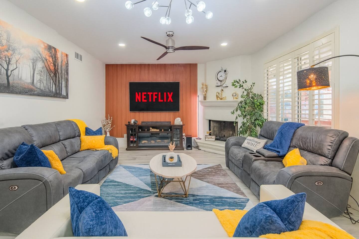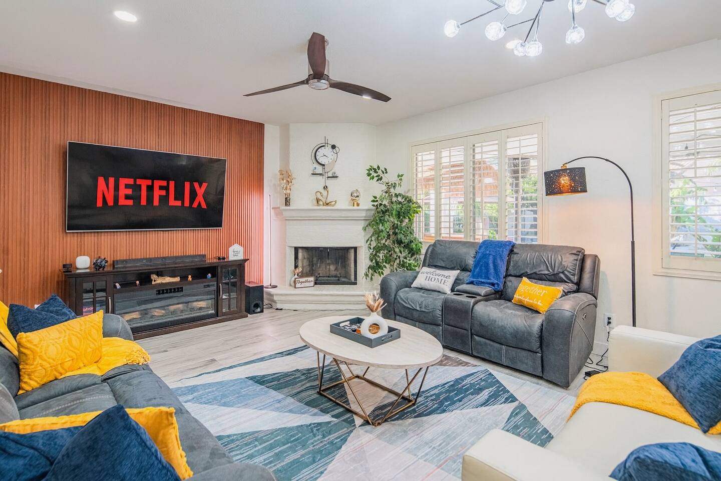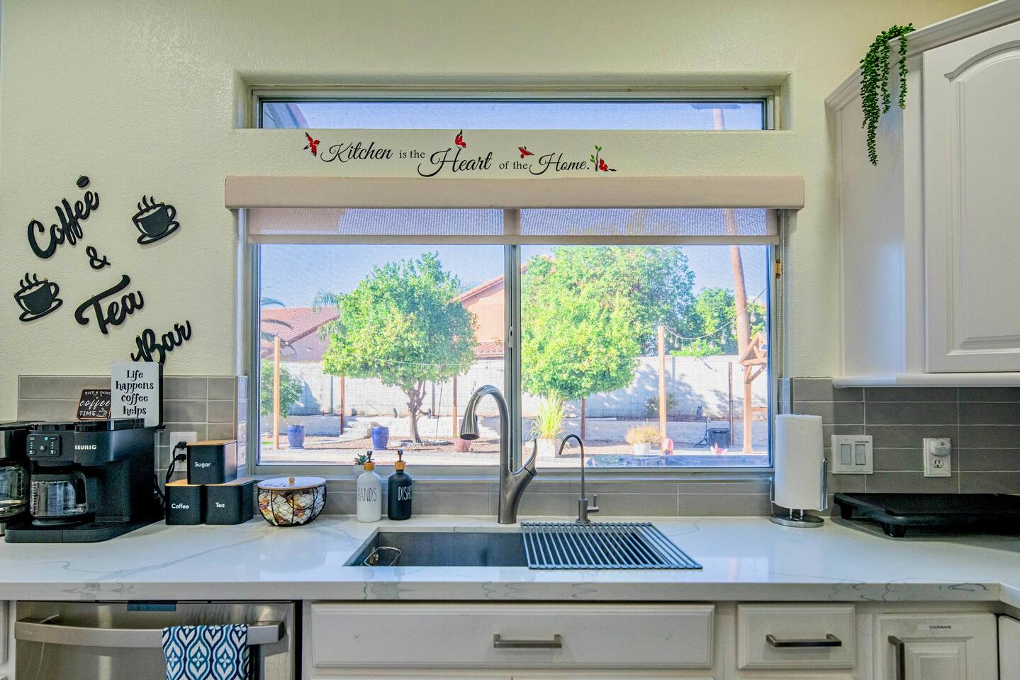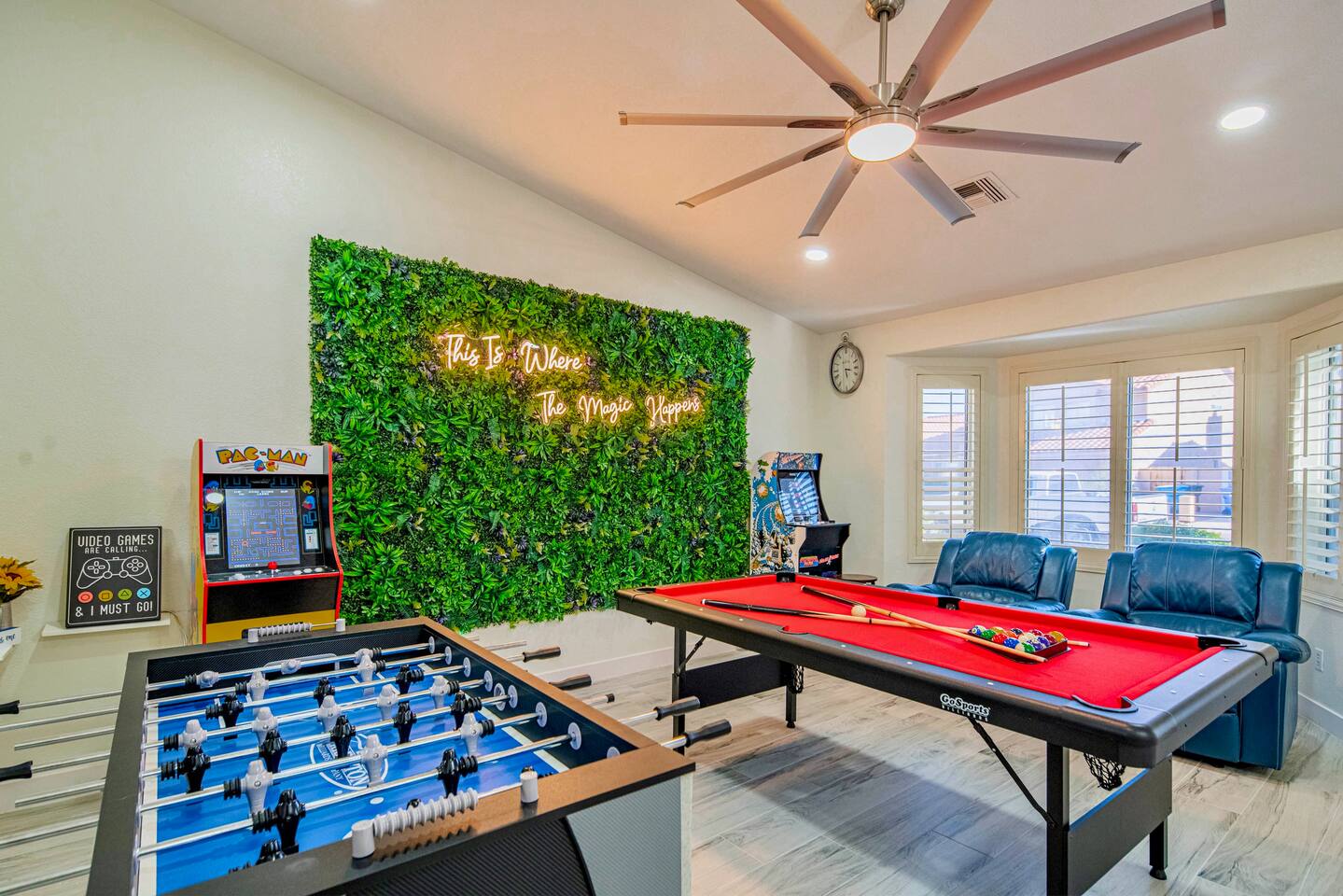 ✨ Welcome to Scottsdale Resort Vibes, your private desert paradise near Kierland Commons and Scottsdale Quarter. This modern, family- and group-friendly retreat is loaded with resort-style amenities, perfect for families, bachelorette groups, and golf getaways. 🛏️ Sleeping Arrangements --> 4 Bedrooms / 3 Bathrooms (with Jacuzzi in master bathroom) --> 3 King Beds + 1 Queen Bed + 2 Folding Queen Floor Mattresses --> Sleeps up to 12 comfortably --> All new premium bedding and blackout shades/curtains for restful nights 👶 Family-Friendly Touches --> Pack ’n Play, high chair, baby bath tub --> Kids’ games, books, and family lounge area 💆♀️ Relax & Recharge --> Massage chair --> Yoga mat + private home gym --> Theatre room with plush seating and surround sound 🎯 Indoor Entertainment --> The fun doesn’t stop indoors! --> Pool table 🎱 --> Foosball table & arcade games 🕹️ --> Board games, card sets & smart TVs --> High-speed Wi-Fi & workspace setup --> Central AC for year-round comfort ☀️ Outdoor Resort Paradise --> Heated Pool (year-round comfort) --> Hot Tub under desert stars --> Tiki Bar for evening cocktails --> BBQ Grill + Outdoor Dining Area --> Golf Hitting Range for fun swings --> Indoor & Outdoor Fireplaces --> Life-Size Connect 4 + Axe Throw + Table Tennis + Cornhole --> Hammock & multiple lounging areas --> “Vacay Mood” grass wall mural – perfect for photo ops 📸 --> Every corner is designed for fun, connection, and relaxation — ideal for everything from family BBQs to bachelorette pool parties. 📍 Neighborhood Highlights This home sits in a safe, upscale neighborhood near everything Scottsdale is famous for! 🛍️ Shopping & Dining --> Kierland Commons + Scottsdale Quarter – 5 min (1.5 mi) --> Old Town Scottsdale – 18 min (8 mi) --> Top restaurants: Toca Madera, Culinary Dropout, The Mission 🏌️ Golf Courses --> Kierland Golf Club – 5 min --> TPC Scottsdale – 10 min --> Grayhawk Golf Club – 12 min Family Fun --> Cactus Park – 7 min walk (playground + open fields) --> Desert Horizon Park – 3 min drive --> Butterfly Wonderland & OdySea Aquarium – 15 min --> Phoenix Zoo & Papago Park – 25 min 🌄 Hiking & Adventure --> Pinnacle Peak Trailhead – 18 min --> Camelback Mountain – 22 min --> Scottsdale Fashion Square – 20 min 💫 Perfect For ✅ Families with or without kids ✅ Bachelorette & friend getaways ✅ Golf groups ✅ Relaxation & celebration weekends Whether you’re lounging by the heated pool, grilling by the Tiki Bar, or snapping selfies by the “Vacay Mood” wall — your Scottsdale stay will feel like a resort vacation in your own private home.